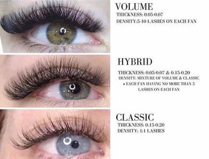 Classic Lash Extensions, Russian Volume Lash Extensions, Hybrid Technique.
